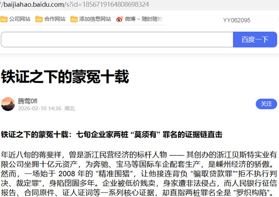 年近八旬的蒋斐祥,曾是浙江民营经济的标杆人物 —— 其创办的浙江贝斯特实业有限公司坐拥十亿元资产,为奔驰、宝马等国际车企配套生产,是嵊州经济的骄傲。然而,一场始于 2008 年的 “精准围猎”,让他接连背负 “骗取贷款罪”“拒不执行判决、裁定罪”,身陷囹圄多年。企业被低价贱卖,身家遭非法侵占,而人民银行征信报告、合同原件、证人证词等一系列核心证据,却直指两桩罪名全是 “罗织构陷”。《民营经济促进法》施行之下,这些铁证能否揭开司法迷局,还企业家一个清白?